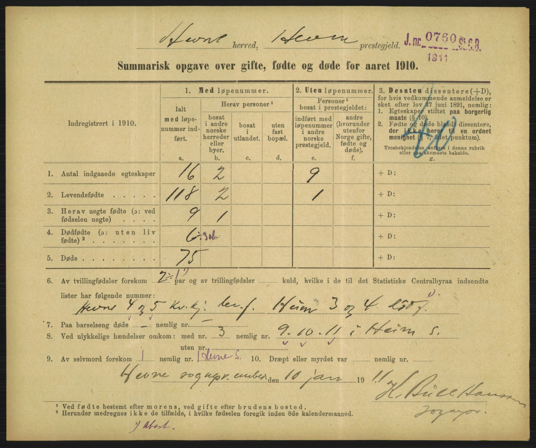 Statistisk Sentralbyrå, Folkemengdens bevegelse (Serie FB) 1910, nr. 46: Summariske oppgaver over fødte, gifte og døde for hele landet, Astaref: AV/RA-S-2228/D/Df/Dfa/Dfah/L0046