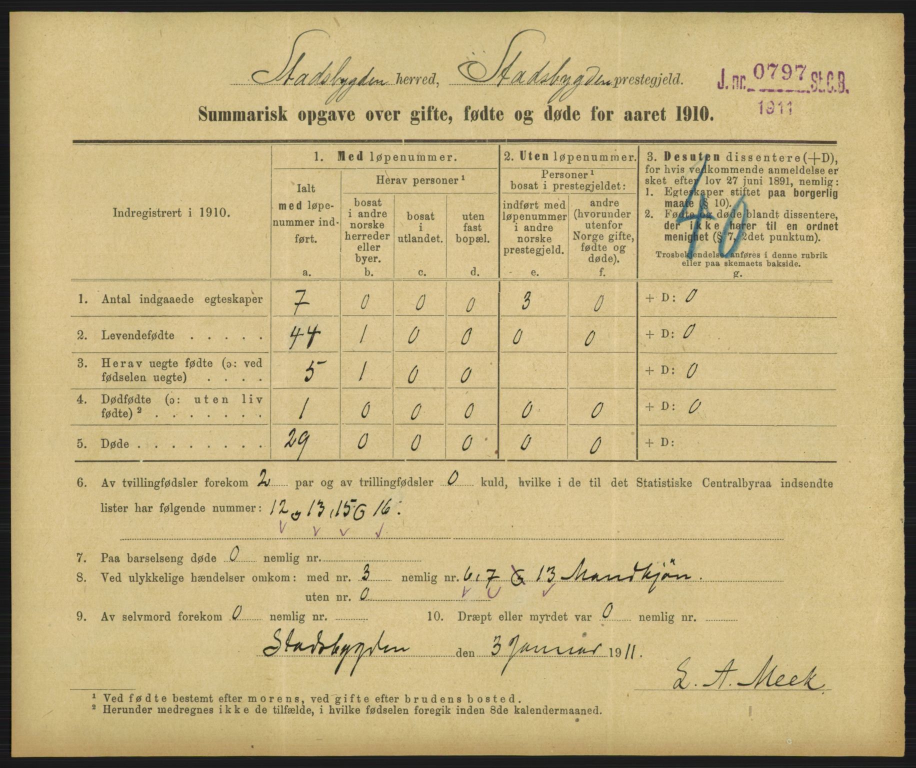 Statistisk Sentralbyrå, Folkemengdens bevegelse (Serie FB) 1910, nr. 46: Summariske oppgaver over fødte, gifte og døde for hele landet, Astaref: AV/RA-S-2228/D/Df/Dfa/Dfah/L0046