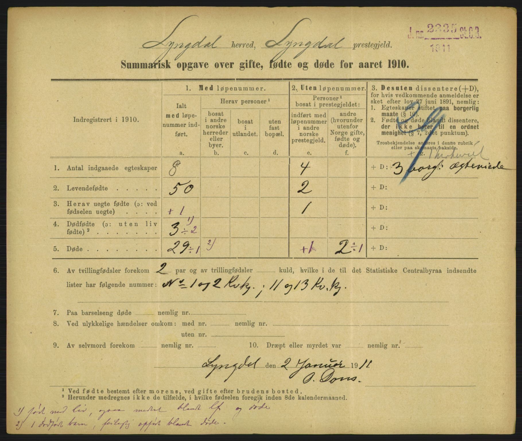 Statistisk Sentralbyrå, Folkemengdens bevegelse (Serie FB) 1910, nr. 46: Summariske oppgaver over fødte, gifte og døde for hele landet, Astaref: AV/RA-S-2228/D/Df/Dfa/Dfah/L0046