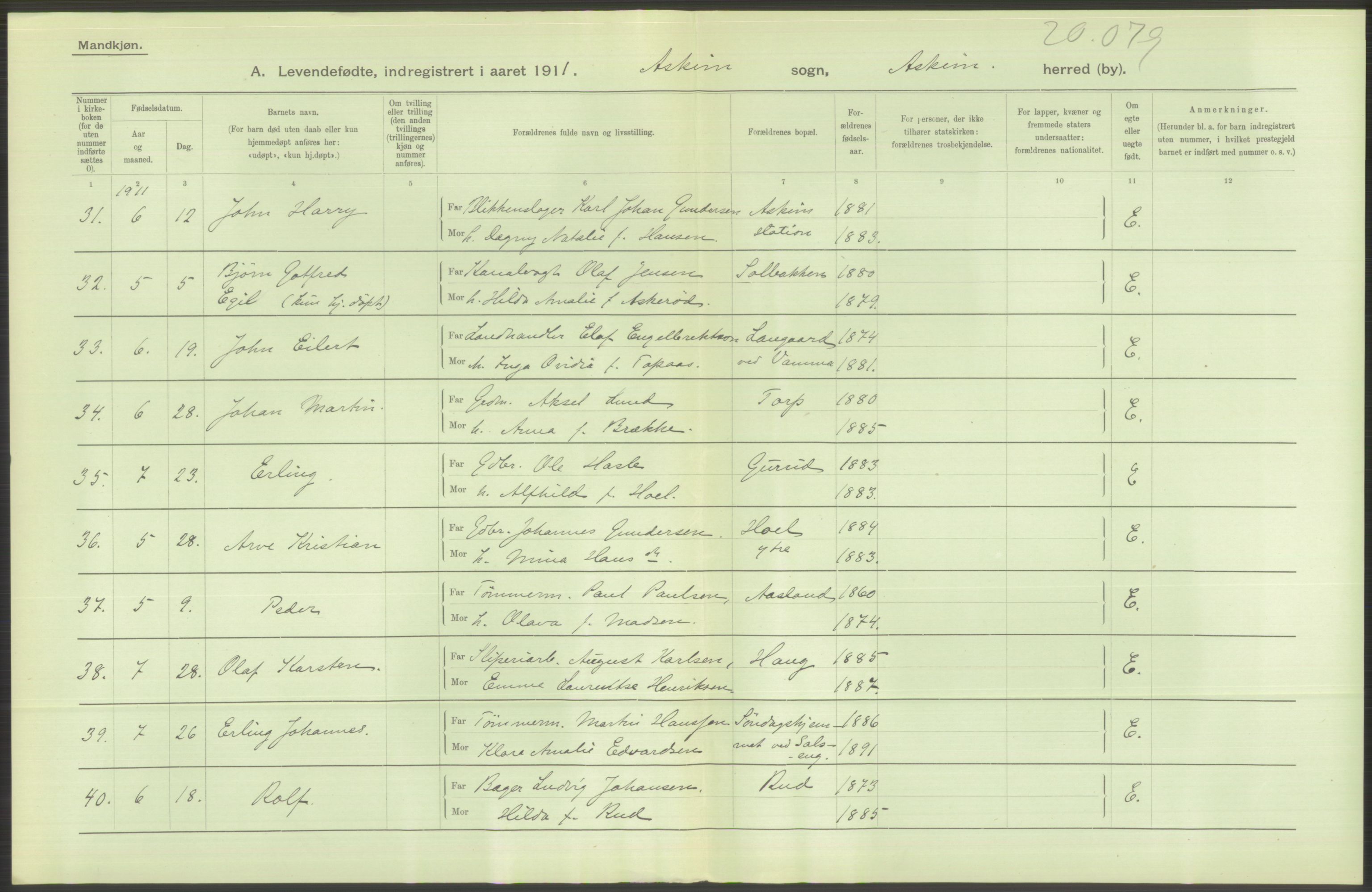 Statistisk Sentralbyrå, Folkemengdens bevegelse (Serie FB) 1911, nr. 1: Smålenenes amt, Astaref: AV/RA-S-2228/D/Df/Dfb/Dfba/L0001