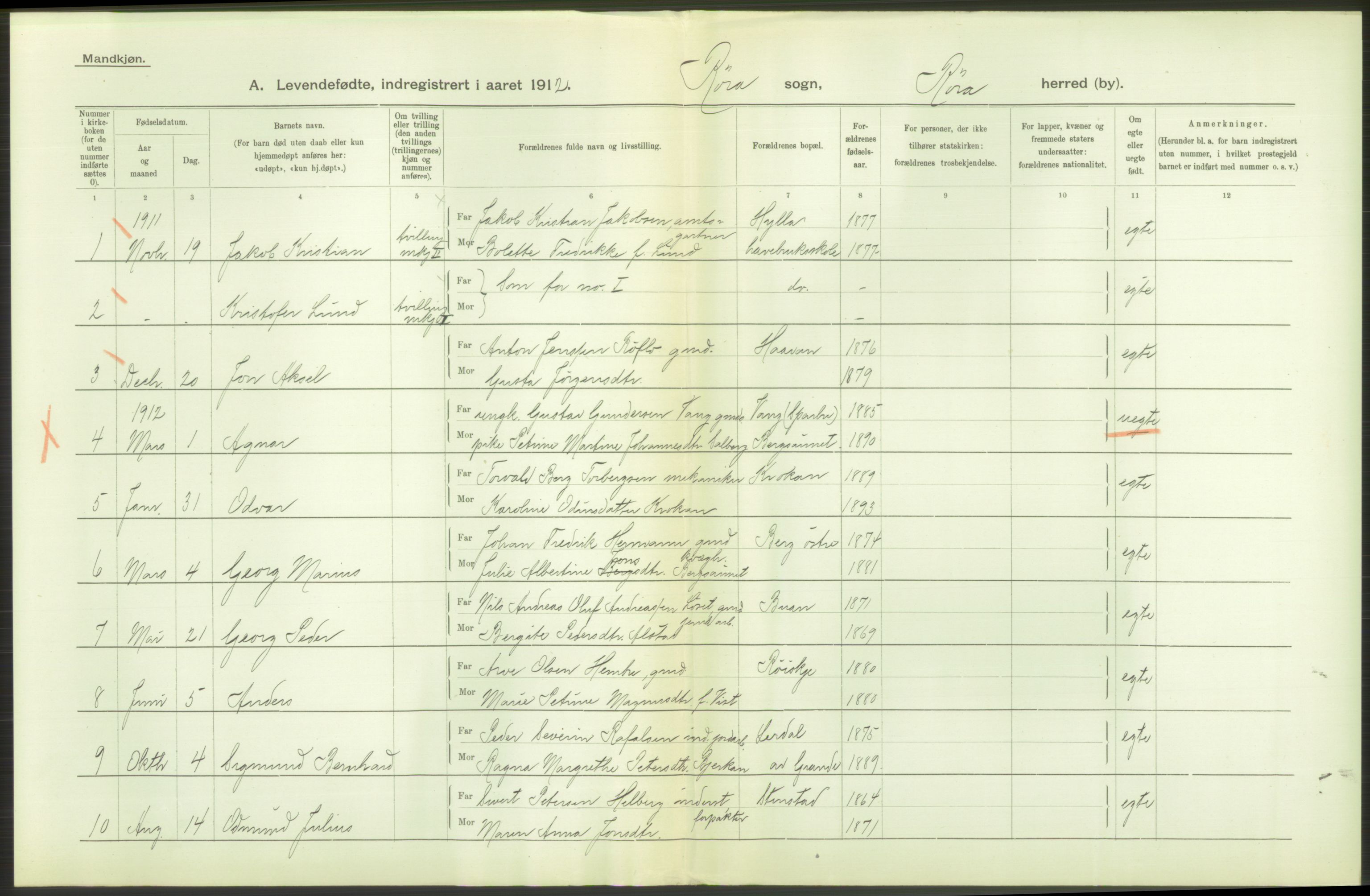 Statistisk Sentralbyrå, Folkemengdens bevegelse (Serie FB) 1912, nr. 44: Nordre Trondhjems amt, Astaref: AV/RA-S-2228/D/Df/Dfb/Dfbb/L0044