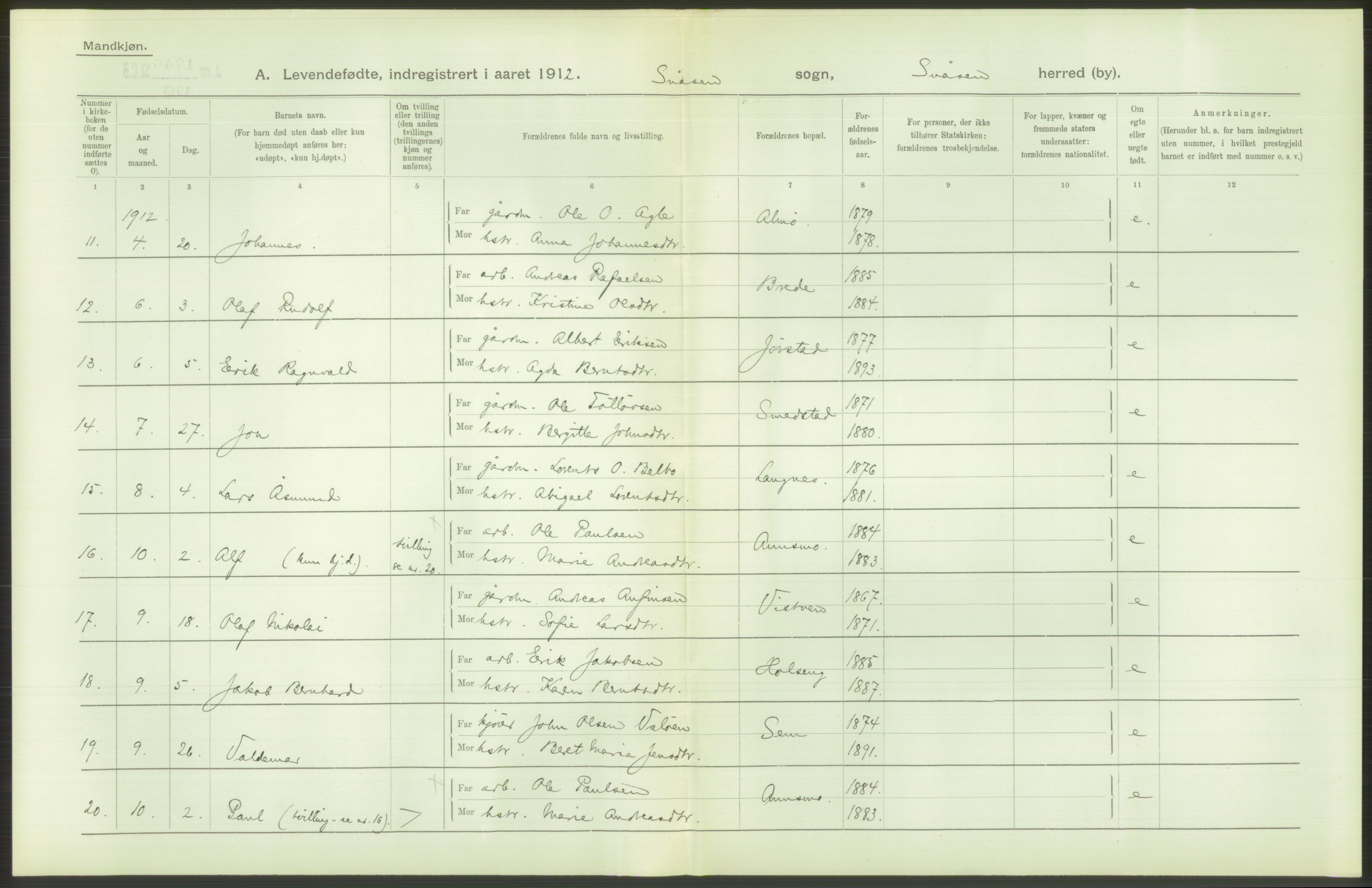Statistisk Sentralbyrå, Folkemengdens bevegelse (Serie FB) 1912, nr. 44: Nordre Trondhjems amt, Astaref: AV/RA-S-2228/D/Df/Dfb/Dfbb/L0044