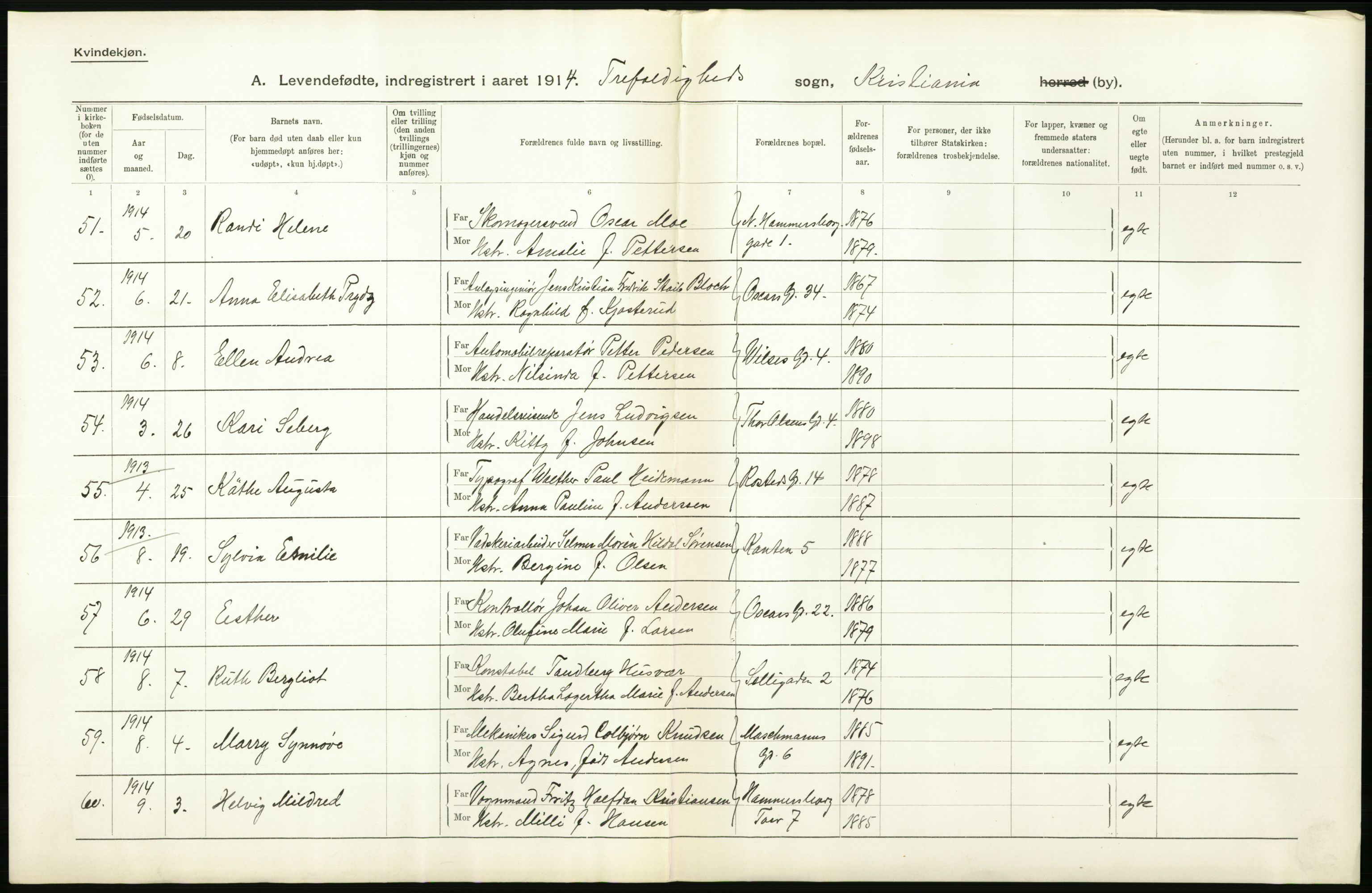 Statistisk Sentralbyrå, Folkemengdens bevegelse (Serie FB) 1914, nr. 6: Kristiania, Astaref: AV/RA-S-2228/D/Df/Dfb/Dfbd/L0006