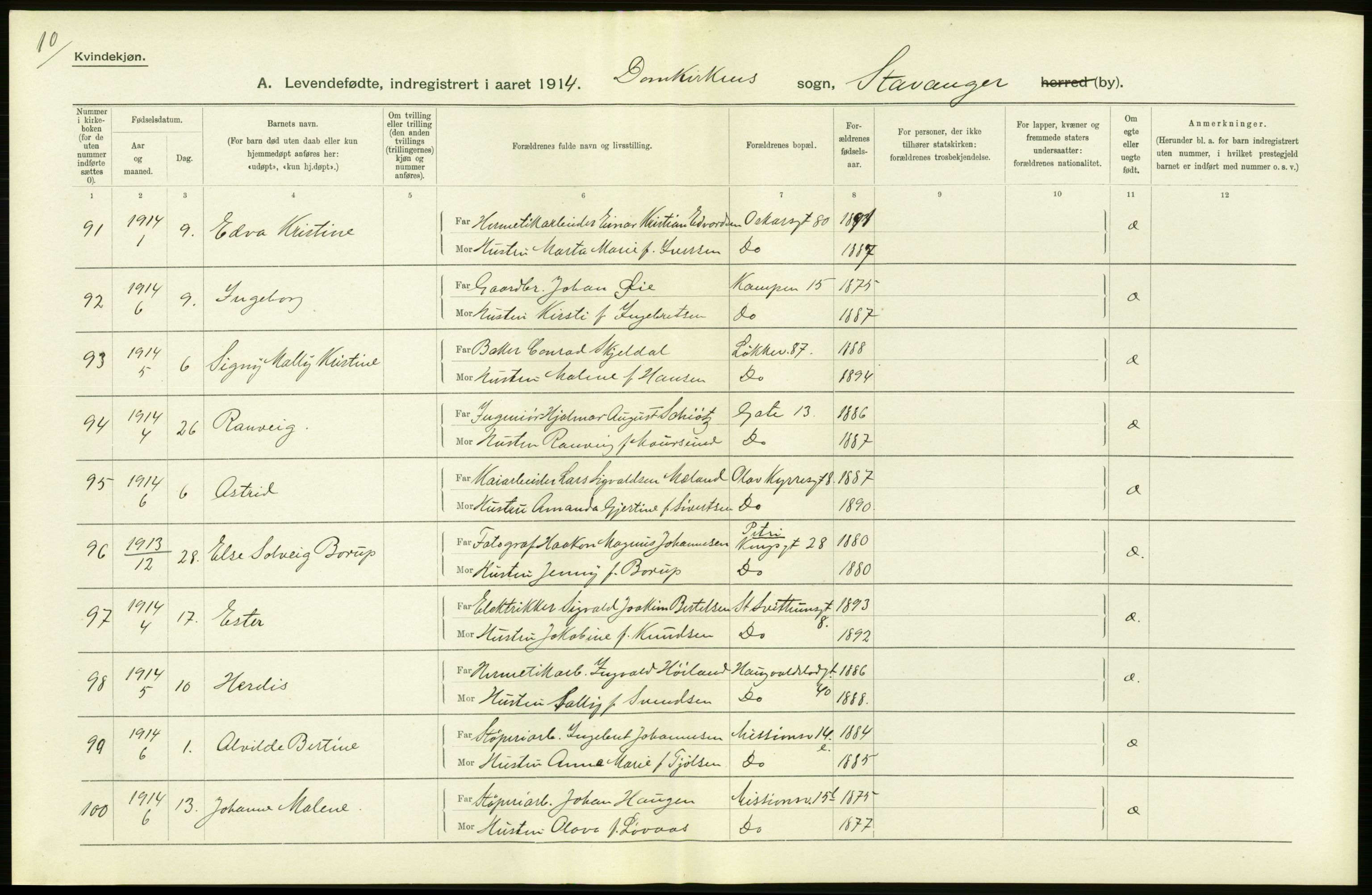 Statistisk Sentralbyrå, Folkemengdens bevegelse (Serie FB) 1914, nr. 25: Stavanger amt, Astaref: AV/RA-S-2228/D/Df/Dfb/Dfbd/L0025