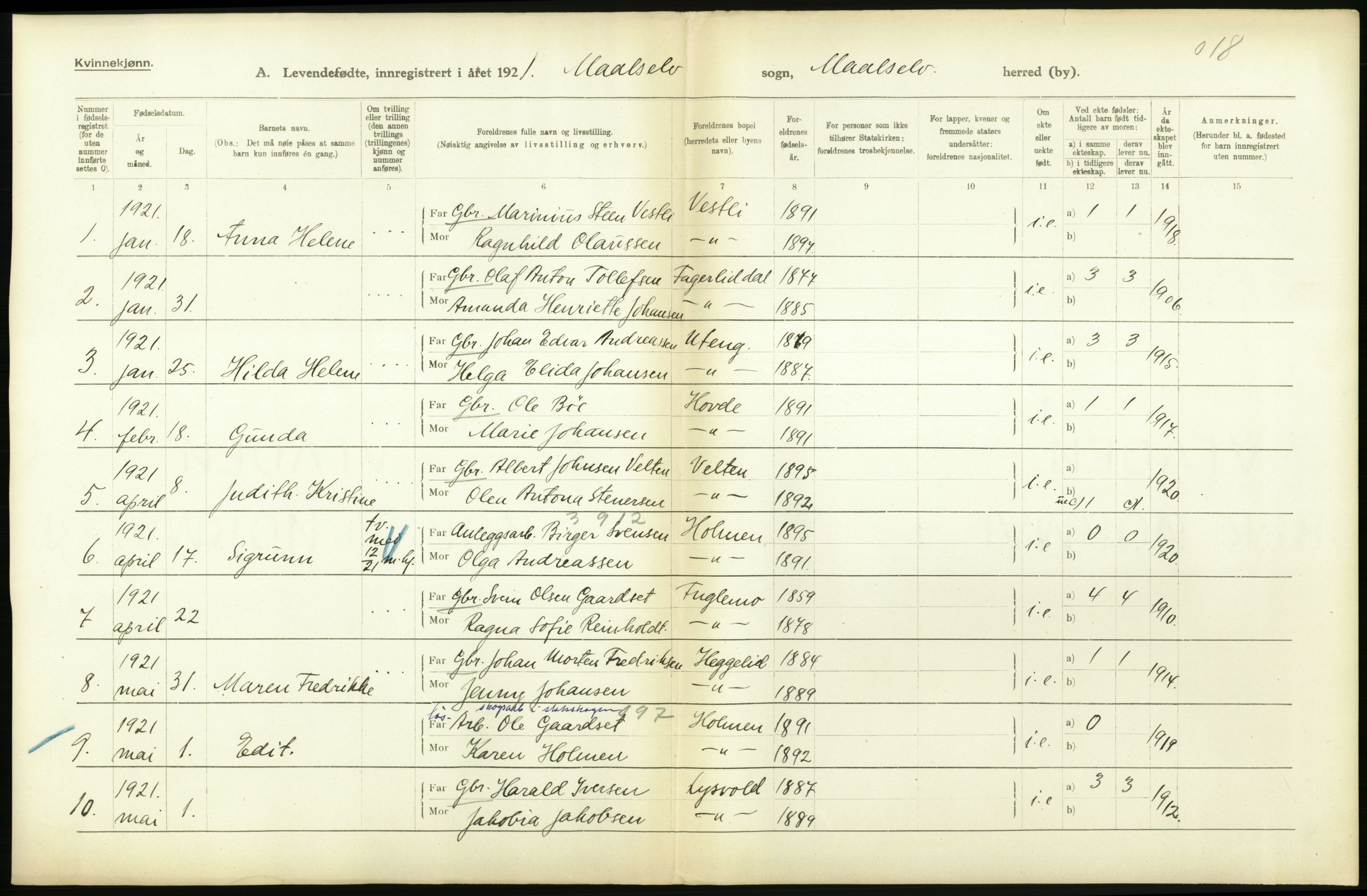 Statistisk Sentralbyrå, Folkemengdens bevegelse (Serie FB) 1921, nr. 52: Troms, levendefødte, Astaref: AV/RA-S-2228/D/Df/Dfc/Dfca/L0052