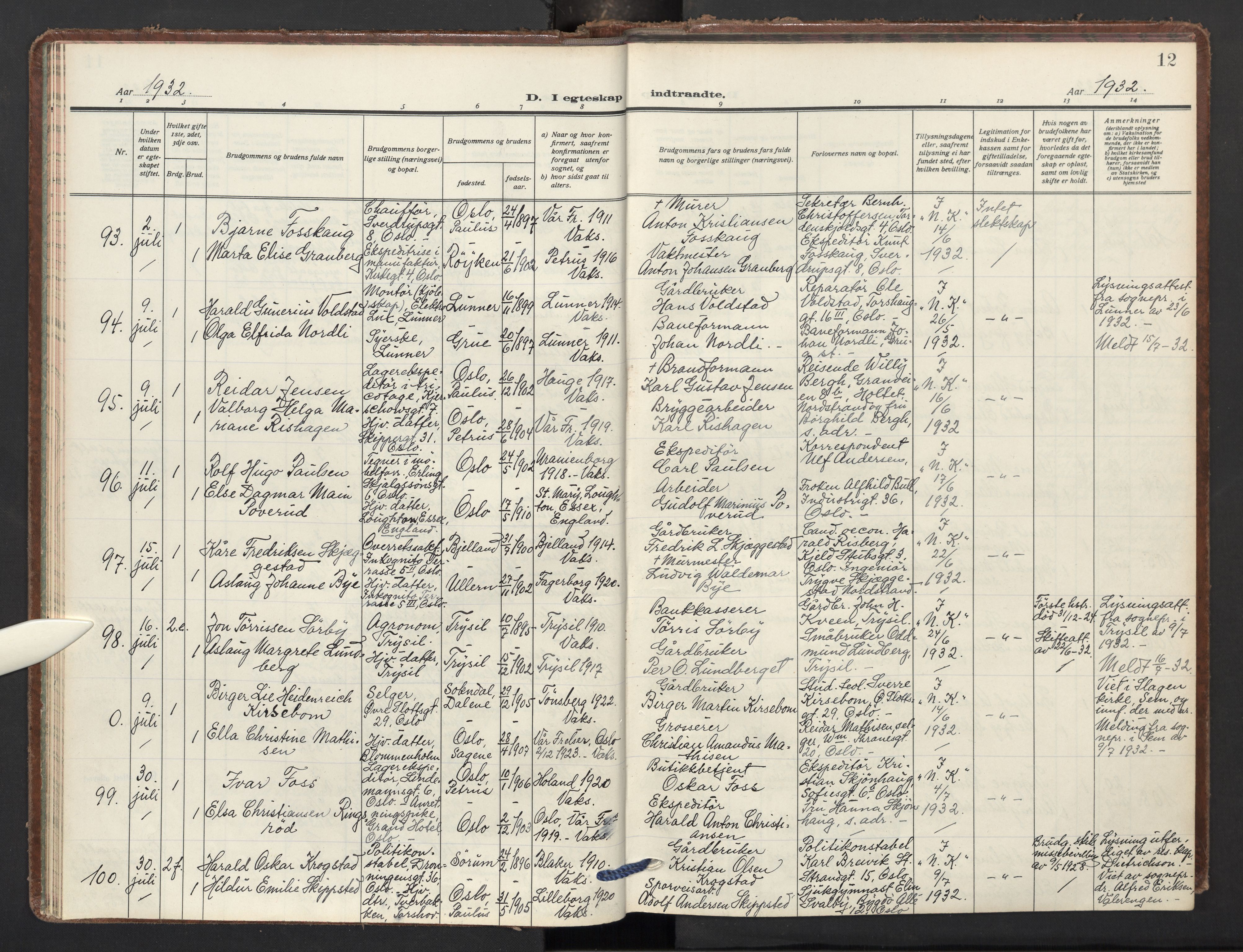 nr. 42 /1932 - 1937Oslo fylke Oslo by Oslo Domkirke / Vår Frelsers menighet -KirkebøkerMinisterialbøkerBorgerlige vielserPersonopplysningerForlovelse, lysning og ekteskapStatlige arkiverKirken