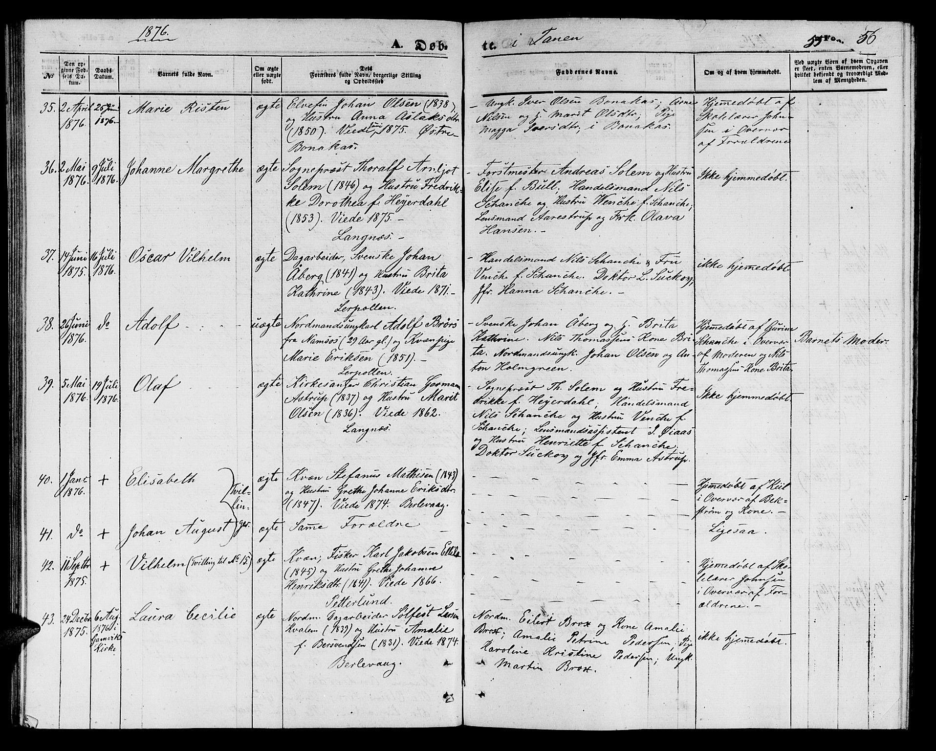 nr. 2 /1 /1866 - 1877Finnmark fylke Tana prgj. Tana sokn Den originale kirkeboken er ført felles for Tana og Gamvik sokn, i avdelinger for hvert av soknene. I den digitaliserte versjonen er sidene for hvert sokn samlet og fremstår som egne bøker. Lister som er ført felles for begge sokn (flyttede, vaksinerte) ligger under Tana hovedsokn.KirkebøkerKlokkerbøkerPersonopplysningerFødsel og dåpKonfirmasjonForlovelse, lysning og ekteskapDød og begravelseVaksinasjonEmigrasjon og flyttingStatlige arkiverKirken
